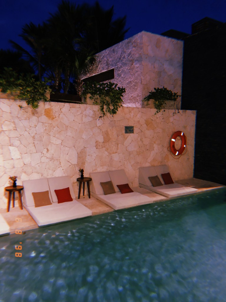 DIA 1 – Desembarcamos em Cancun às 3 horas da tarde (hora local), após uma escala de 1h40 no Panamá. Depois de passar na imigração e pegar as malas, pegamos um transfer que fechamos com antecedência com a Tio Nenê Tours até Tulum (2h de carro/van). Chegamos no nosso hotel por volta das 7h30 da noite.