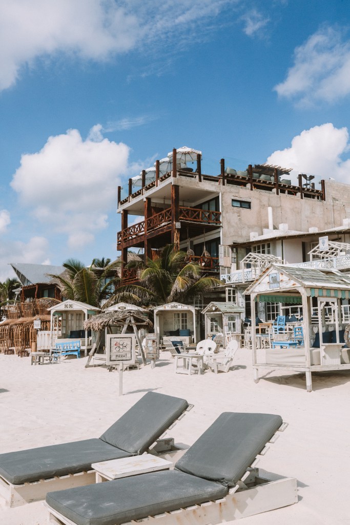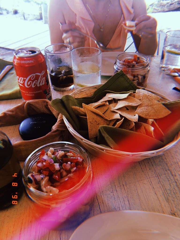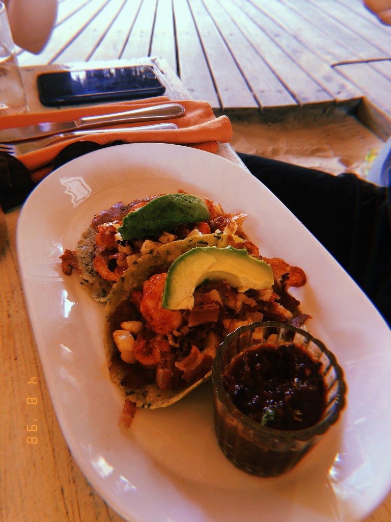 DIA 4 – No quarto dia do nosso roteiro, fomos bater perna mais uma vez pela Zona Hoteleira. Dessa vez conhecemos o bar do hotel Coco Tulum (ao lado do nosso), bem conhecido na região por conta dos famosos balanços brancos virados para a praia. Fizemos fotos bem legais por lá. Como o calor estava muito forte, demos uma descansada depois e perto do meio dia optamos por almoçar no Fresco’s, um restaurante bem gostosinho e leve um pouco depois do nosso hotel. Pedimos ceviche e tacos, tudo muito gostoso e com um preço legal se comparado aos demais restaurantes da região.