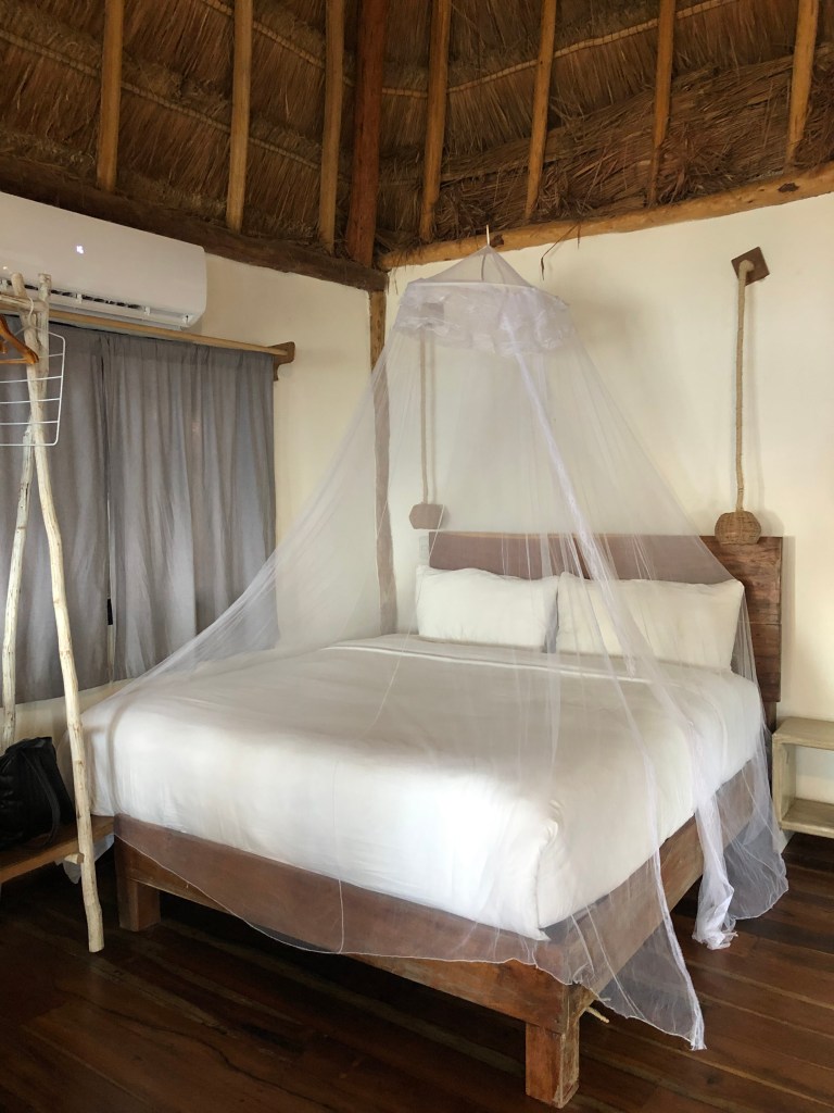 Ficamos hospedados no Hotelito Azul, que está localizado na Zona Hoteleira, a melhor região para se hospedar em Tulum, na minha opinião. O Hotelito é um hotel incrível e segue à risca esse mood de Tulum, mesclando natureza, rusticidade e conforto. A vista do quarto era de tirar o fôlego. Uma delícia ver o nascer do sol da nossa varanda.