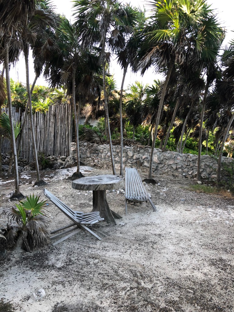 Saímos de lá, passamos no mercado e depois seguimos para o hotel para pegar nossas malas e trocar de acomodação. Fomos para a Casa Emily (disponível também no airbnb), que fica na área considerada como Sítio Arqueológico de Tulum. Já é um lugar mais isolado, com um restaurante/hotel de um lado (alguns passos de distância) e outra do lado oposto, também a alguns passos de distância.