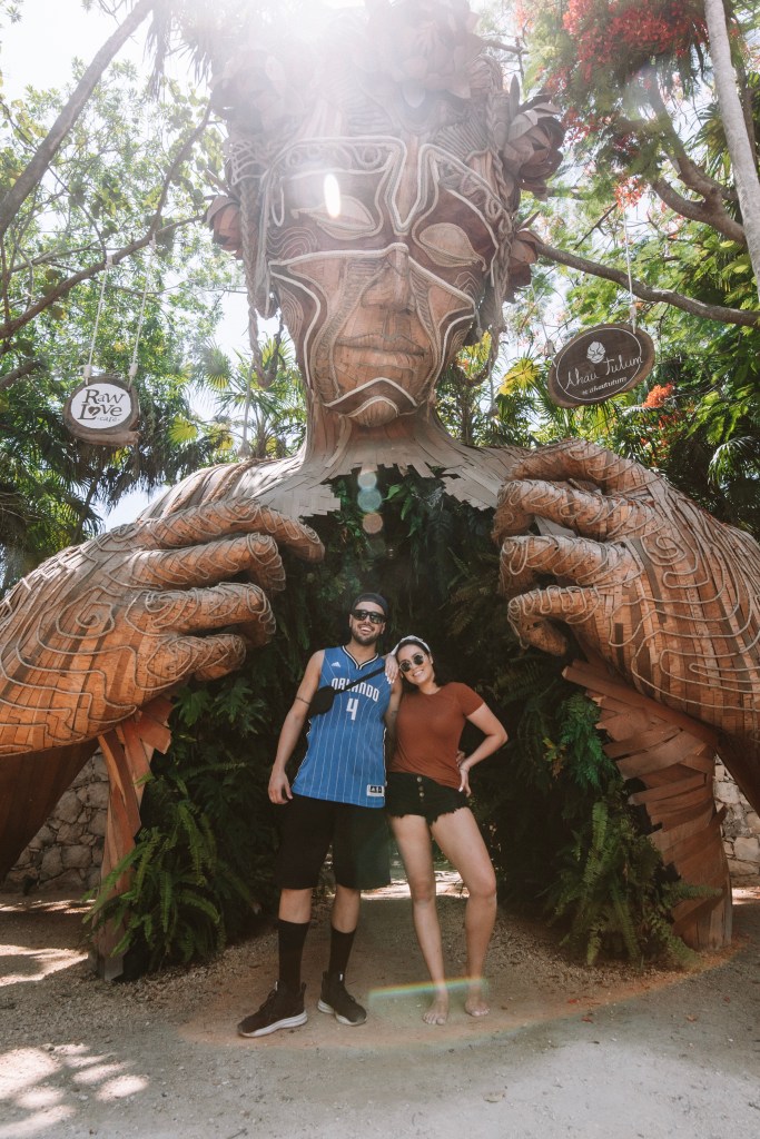 DIA 2 – No segundo dia, acordamos cedo para explorar a Zona Hoteleira de Tulum. Batemos perna por toda a avenida dos hotéis principais e conhecemos o Vien a la Luz, uma escultura artística que mostra uma mulher com o peito “aberto” (que é por onde as pessoas passam) e plantas dentro. Você com certeza vai querer garantir uma foto por lá.