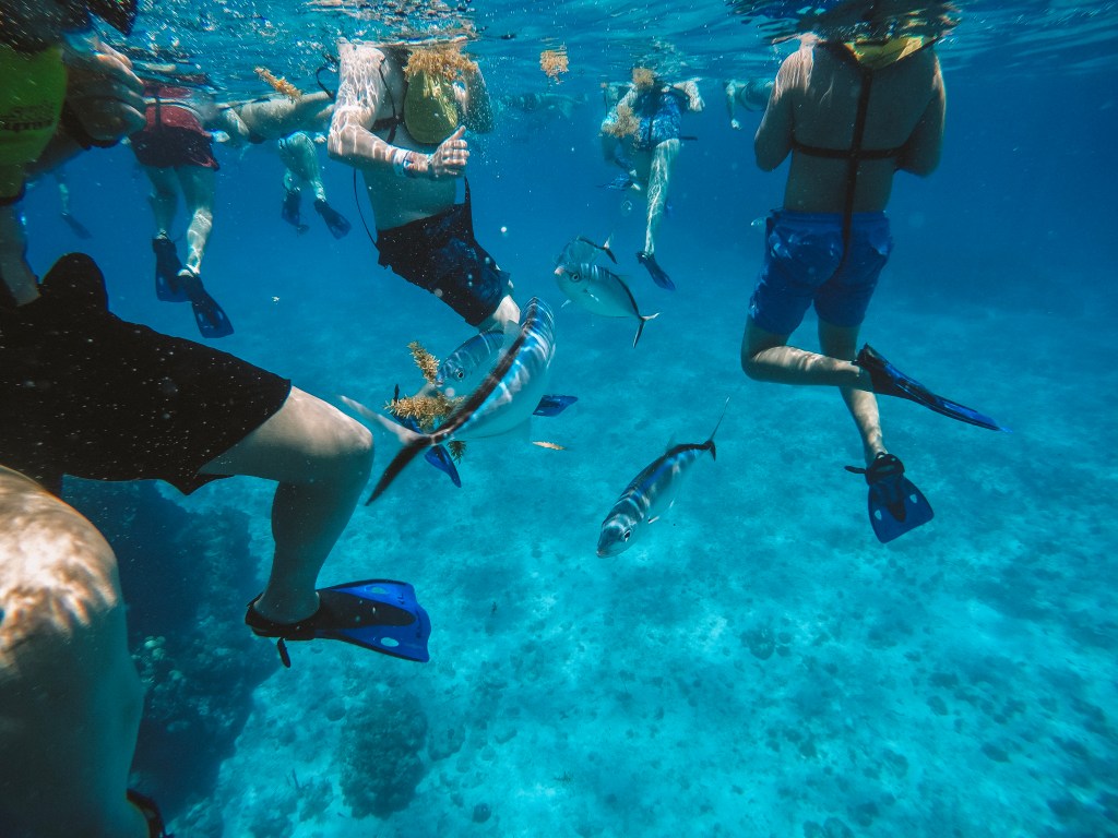 Depois do snorkel, fomos direto para o Beach Club de Playa Mia para comer, beber e aproveitar (open food e open bar o pacote que fechamos). É um ambiente bem familiar e gostoso. E cheio. Pela agência que fechamos, esse passeio (que dura o dia todo) custa em torno de US$189,00 (dólares) por pessoa. Atenção: proibido usar protetor solar e repelente antes de entrar nos recifes.