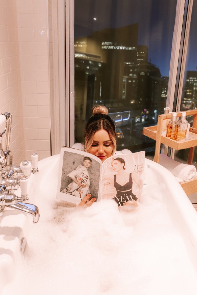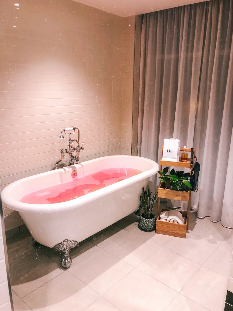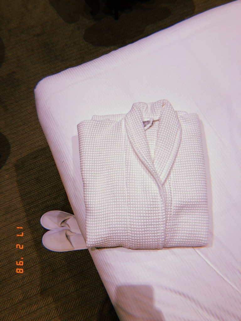 O hotel é simplesmente maravilhoso! Imponente e clássico, quando entra nos quartos você fica em dúvida se está em um hotel ou perdido em uma pasta do Pinterest, rs. Pegamos dois quartos. Um com duas camas de casal e outro com uma cama gigantesca. Ambos tinham banheiros com banheira. A banheira do quarto com uma cama só era bem vintage, perfeita para quem ama uma foto. Ambos os quartos tinham roupão para os hóspedes e uma pantufa deliciosa! Fiquei com vontade de roubar o roupão? Fiquei. Mas não o fiz, kkkk. O sistema de serviço de quarto é acionado por um interruptor com 2 opções: “serviço de quarto”, que você liga quando quer que o quarto seja arrumado e “não disturbe”, quando você não quer.