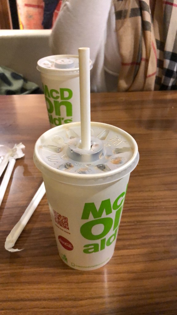 Já comi no Mc Donald’s do Brasil, África do Sul, Estados Unidos e Chile e gostei em todos eles. Mas, em Londres, não gostei muito. Achei o cuidado com o preparo mil vezes pior que em todos os lugares. O lanche praticamente desmontado na caixinha. Mas… é uma refeição rápida e barata, né? Achei que as opções de lanches eram bem poucas: Big Mac, Quarter Pounder com queijo, uma opção vegetariana, um com peixe e dois com frango. Os combos custavam entre £5,00 e £6,00. Em reais, em torno de R$30,00 e R$36,00.