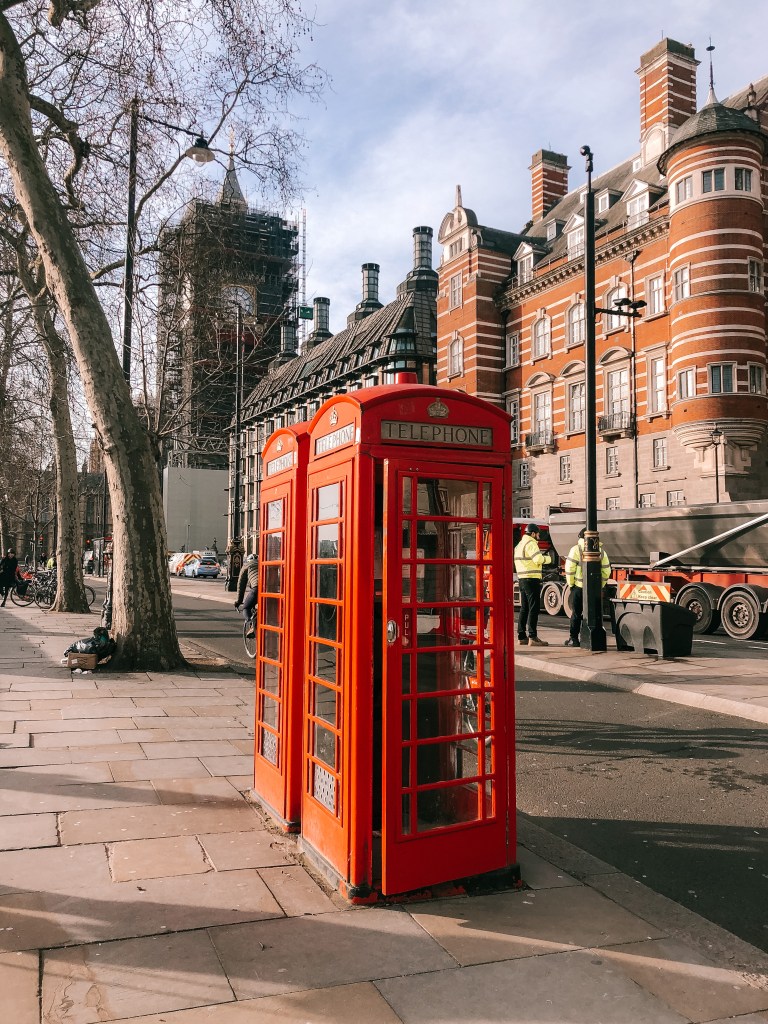 Outra coisa que o turista não vai embora de Londres sem fazer é tirar uma foto em uma das cabines telefônicas. Nos últimos 10 anos o uso do telefone público caiu 90%, e as 92 mil cabines telefônicas espalhadas por Londres hoje são menos que 50 mil, sendo 8 mil delas tradicionais. A Praça do Parlamento é a melhor localização para tirar foto na cabine, com o Big Ben de fundo. A praça de Covent Garden também tem várias, mas uma dica especial é ir no Bow Court, onde você encontra 5 delas, uma ao lado da outra.