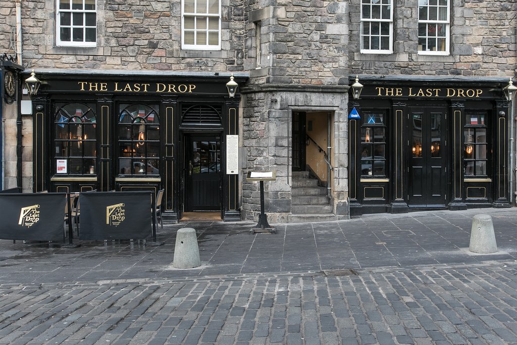 Antigamente a região de Grassmarket, na Old Town de Edimburgo, era palco de execuções públicas. Algumas histórias dizem que o pub The Last Drop era o local onde os condenados bebiam a última gota de álcool de suas vidas antes da execução. Outros dizem que o nome é na verdade uma homenagem ao fim dos enforcamentos. Na frente do bar existe um memorial com o desenho de uma forca, no chão da praça. Existe outra lenda que diz que o bar é assombrado pelo espírito de uma jovem irlandesa. Nos comentários sobre o bar no TripAdvisor, muitos turistas comentam sobre essas histórias.