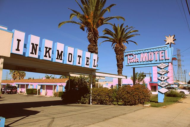 Localizado na icônica Rota 66, o Pink Motel e o seu restaurante, o Cadillac Jack’s Cafe são um cenário retrô perfeitos que te teletransportam para os anos 50. O Motel tem sete quartos que recriam essa vive da década de 50 e o restaurante totalmente funcional tem, claro, uma jukebox. Eles também têm 28 veículos da mesma época disponíveis para uso. Foi cenário de produções como Drive (2011), The O.C. (2003), Dexter (2006) e Glow (2017).