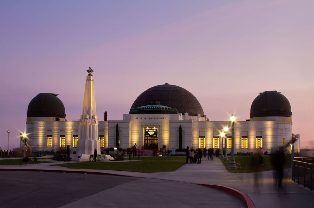 O observatório Griffith localizado no Parque Griffith, no topo de Hollywood, chama atenção com seu layout deslumbrante. É um dos pontos turísticos mais visitados da Califórnia e o observatório mais visitado do mundo. A entrada é gratuita, sendo o show do planetário o único evento cobrado: o valor está em torno de 7 dólares para adultos. Essa também é uma locação campeã de filmagens, tendo servido de cenário para produções como La La Land (2016), De Volta Para O Futuro (1985), O Exterminador do Futuro (1984), Juventude Transviada (1955) e diversas outras.