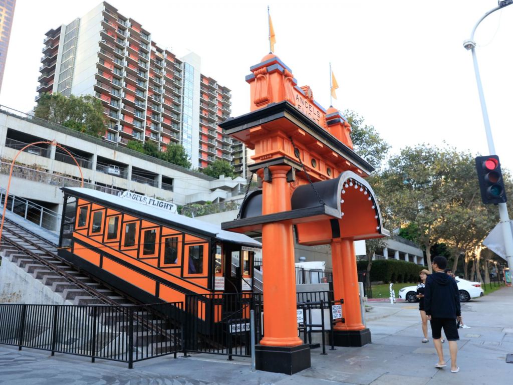 A Angels Flight é uma via funicular ferroviária de Los Angeles construída em 1901 e fechada em outubro de 2013 após um descarrilamento. Apesar de inativo, o local é preservado atualmente como Marco Histórico Nacional e serviu como cenário para uma das cenas do filme La La Land (2016).