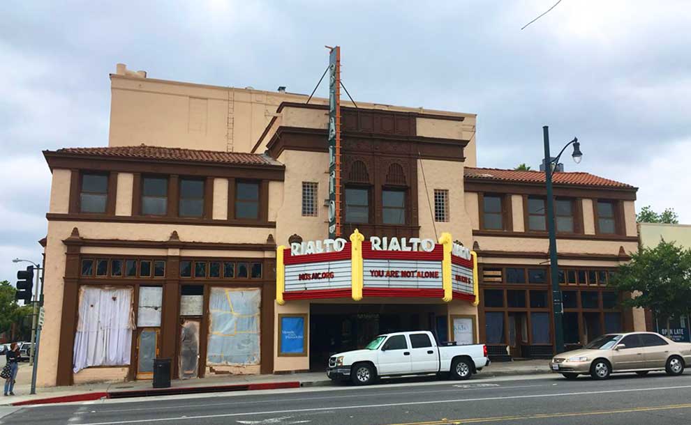 O Rialto é um teatro de 1200 lugares no sul de Pasadena considerado um dos últimos teatros de tela única na Califórnia, listado inclusive no Registro Nacional de Lugares Históricos. Construído em 1925, foi operado pela Landmark Theatres até ser fechado em 2007. Os Simpsons foi o último filme a ser exibido no local, para cerca de 200 pessoas. Houve dois incêndios no edifício e em 2010 ele foi fechado ao público após parte da fachada cair na calçada. Foi comprado em 2014 por Izek Shomof, desenvolvedor de edifícios antigos no centro de Los Angeles, com a promessa de transformar o local em um espaço de entretenimento. Serviu como locação para o filme La La Land (2016).