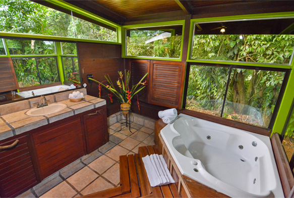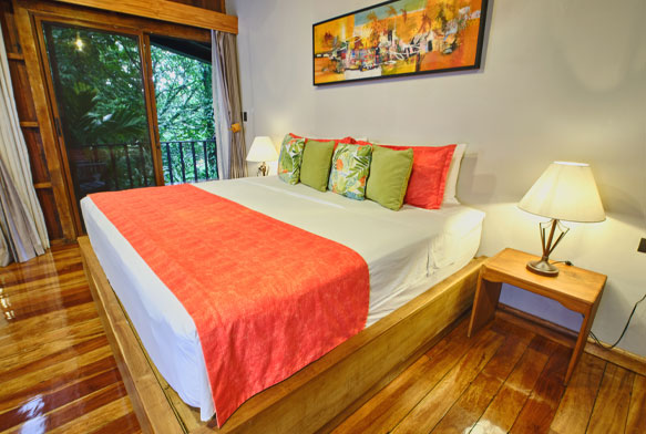 Master Bungalow – para os viajantes mais exigentes que buscam sempre a maior quantidade de luxo possível, o Master Bungalow é o crème de la crème do Chachagua Rainforest Ecolodge. Com um design incrível e um conforto extraordinário, o bangalô Master possui uma passarela que leva ao terraço privativo no meio da floresta. E como se não bastasse, ainda tem uma jacuzzi ao ar livre. Uma experiência única! O quarto também possui 1 cama king-size com colchão de luxo.