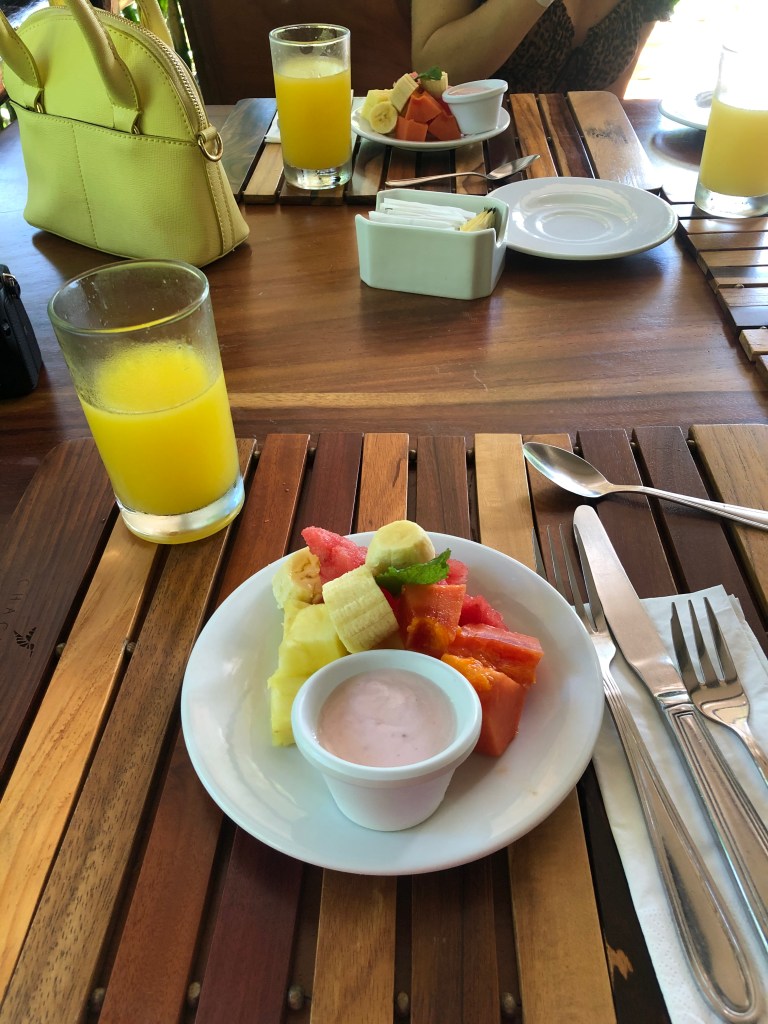 Café da Manhã: no café da manhã eles servem algumas frutas de entrada, você escolhe um prato principal como torrada com ovos mexidos, ou uma opção com feijão que é típica costarriquenha entre outras. Gostoso e simples.